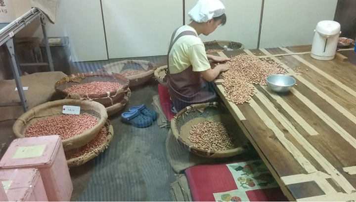 この目に見えない産毛が、舌触りも変えるのです。手で剥く一手間が、大切に育てた落花生をさらに美味しく仕上げてくれるのです。さすが、落花生マイスターたちの手剥きは違います。