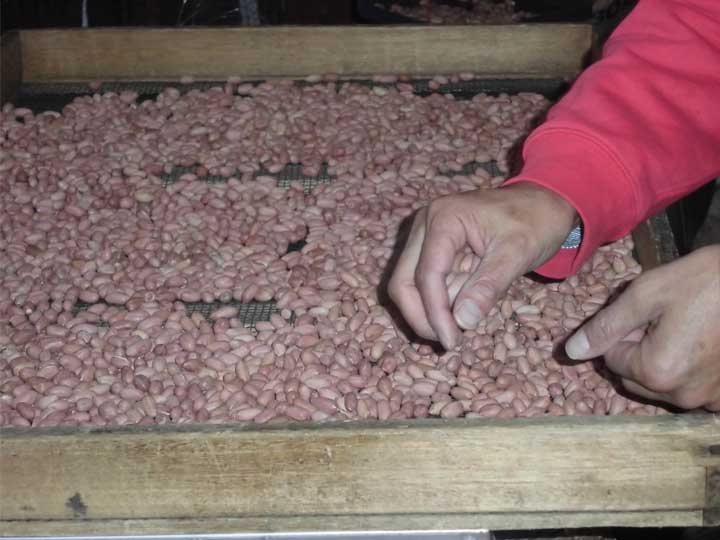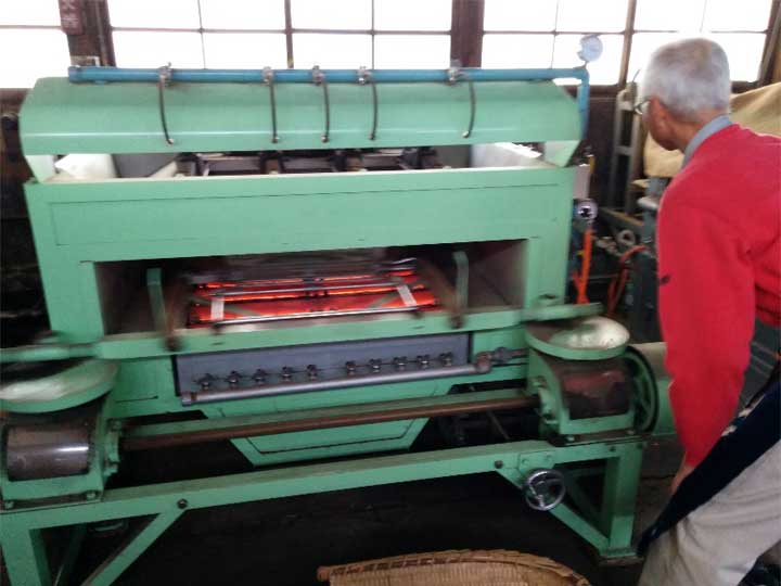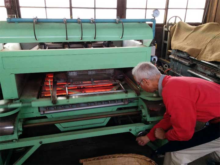 野原さんにも協力してもらい、落花生の煎る工程を撮影させていただきました。当初は石炭、現在はガスで煎っています。